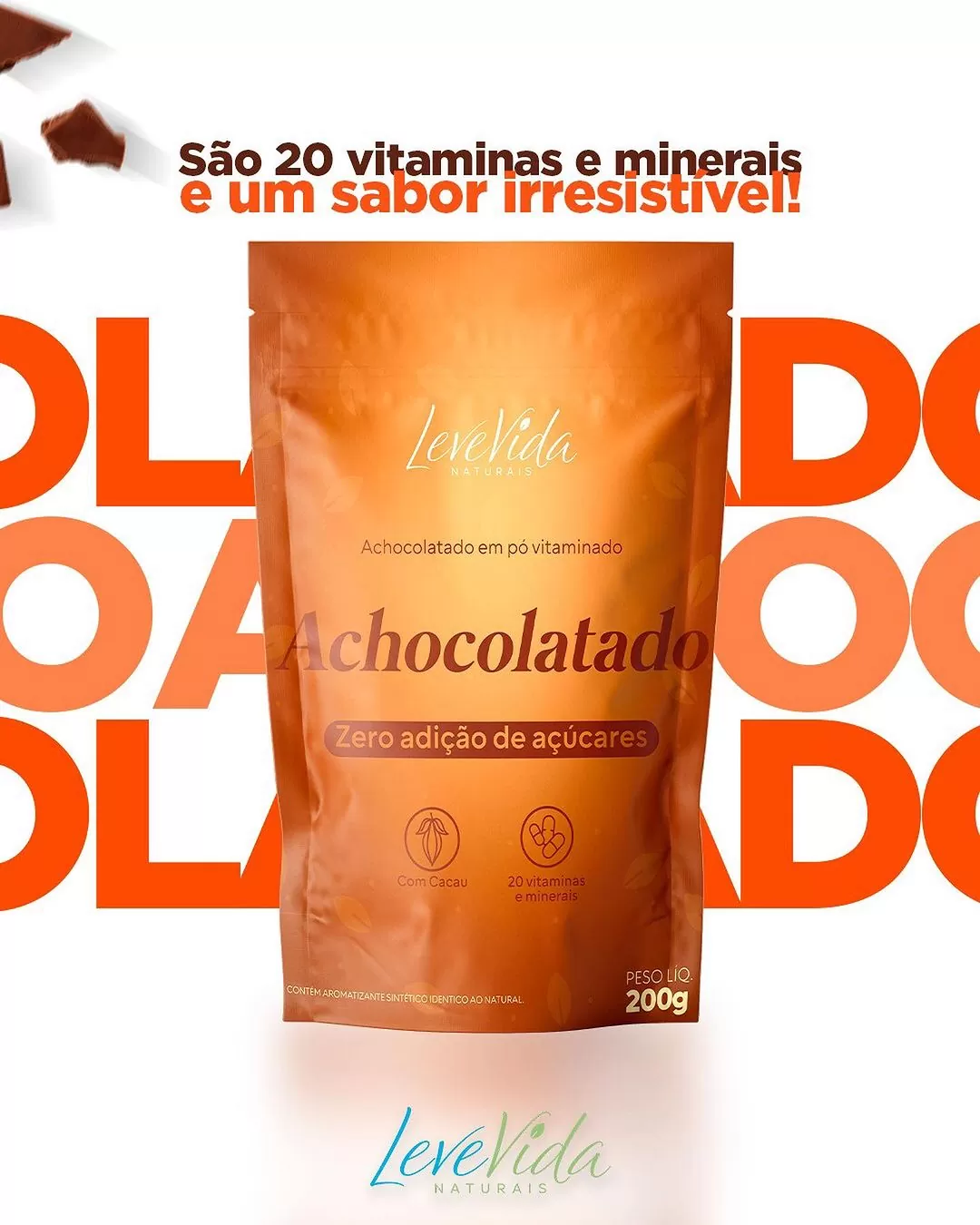 Além de ser uma excelente opção de bebida, o Achocolatado Leve Vida oferece uma mistura de sabor, funcionalidade, alimentação saudável e praticidade em um único produto. Composto por super alimentos capazes de melhorar as funções físicas e cognitivas do seu corpo, além de promover a manutenção da saúde e a sensação de bem-estar contínua, esse produto ainda possui um irresistível sabor de chocolate sem adição de açúcar.