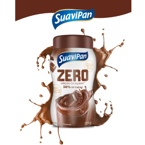 O Pó Para Preparo de Bebida Sabor Chocolate Zero Açúcar 210g, da Suavipané um produto feito sem adição de açúcar, sendo uma ótima escolha para quem quer uma opção prazerosa sem abrir mão da saúde e de uma alimentação equilibrada.