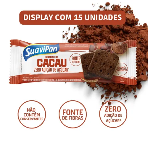 Biscoito de Cacau Zero Display 15x36gr – SuaviPan