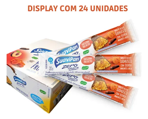 A Barrinha de Frutas Damasco SuaviPan, de 20g, é a opção perfeita para matar a vontade de comer doce de uma forma mais saudável. Ela é sem glúten, sem lactose e não possui adição de açúcares, sendo ideal para pessoas que buscam um lanche prático e equilibrado. As porções individuais são fáceis de transportar, tornando-as convenientes para qualquer ocasião. Sem glúten e lactose. Zero adição de açúcares. Com quinoa, amaranto e aveia. Apenas 62 calorias por unidade.