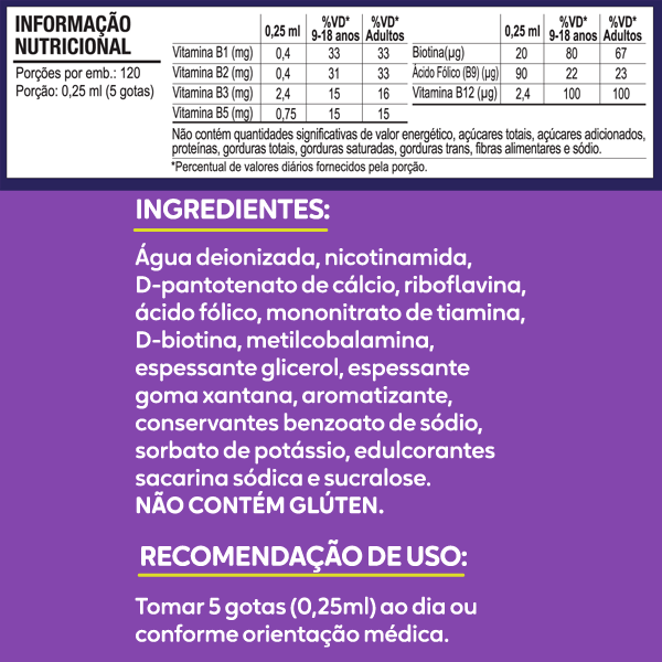 Potencialize sua energia e vitalidade com uma combinação perfeita que reúne todo o poder das vitaminas do Complexo B em um só produto. Reunindo as vitaminas B1, B2, B3, B5, B6, B7, B9 e B12, essa fórmula exclusiva oferece uma variedade de benefícios para a saúde. Desde o suporte ao sistema nervoso até o metabolismo energético e a saúde da pele, cabelos e unhas, as vitaminas do Complexo B desempenham papéis vitais em diversas funções corporais.