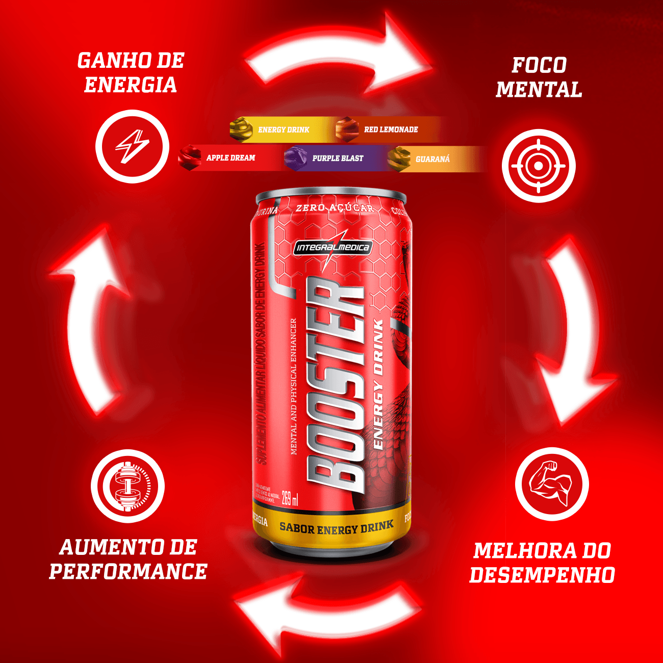 O Booster Energy Drink Integralmedica é um energético especialmente desenvolvido para quem deseja maximizar a performance física e mental durante os treinos. Este produto se destaca pela potência de sua fórmula e por seus ingredientes inovadores, tornando-o único no mercado. Rico em cafeína e vitaminas do complexo B, o Booster Energético atua diretamente no fornecimento de energia, enquanto a colina e a taurina garantem maior foco e concentração, ajudando você a alcançar um desempenho mental superior. Conheça mais sobre os ingredientes:
