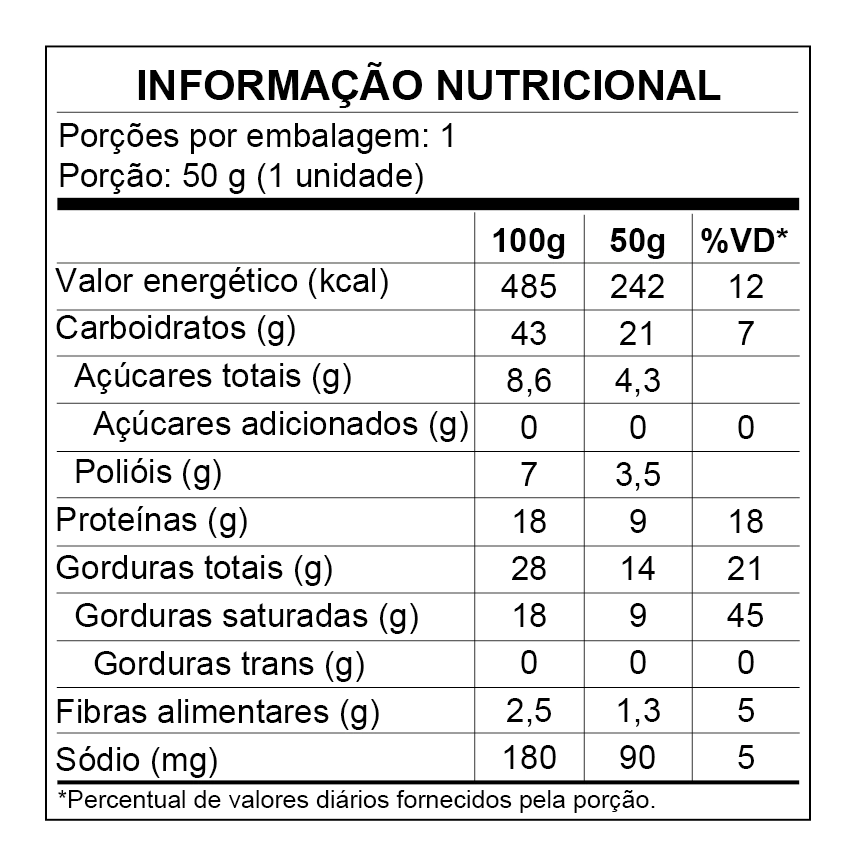 Ingredientes: Cobertura proteica sabor chocolate ao leite, gordura vegetal, amido de mandioca, farinha de arroz, leite desnatado em pó, proteína concentrada do soro de leite, polidextrose, grânulos de caramelo zero açúcares, pistache moído, colágeno hidrolisado, sal marinho, edulcorantes: maltitol e stevia, emulsificantes: lecitina de soja e polirricinoleato de poliglicerol, aromatizantes, corante natural clorofila e espessante goma xantana. NÃO CONTÉM GLÚTEN. CONTÉM LACTOSE.